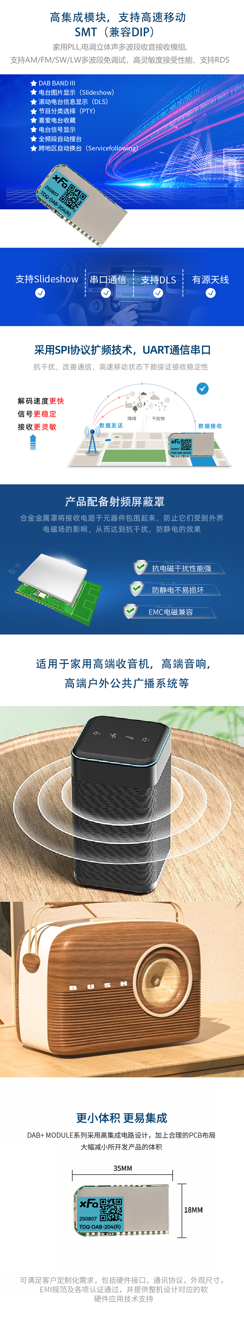 首頁> 商品展示>模擬與數(shù)字廣播系統(tǒng)模塊與外置BOX>Home應(yīng)用>家用DAB+數(shù)字廣播接收模塊,支持 FM>TDQ-DAB-204>